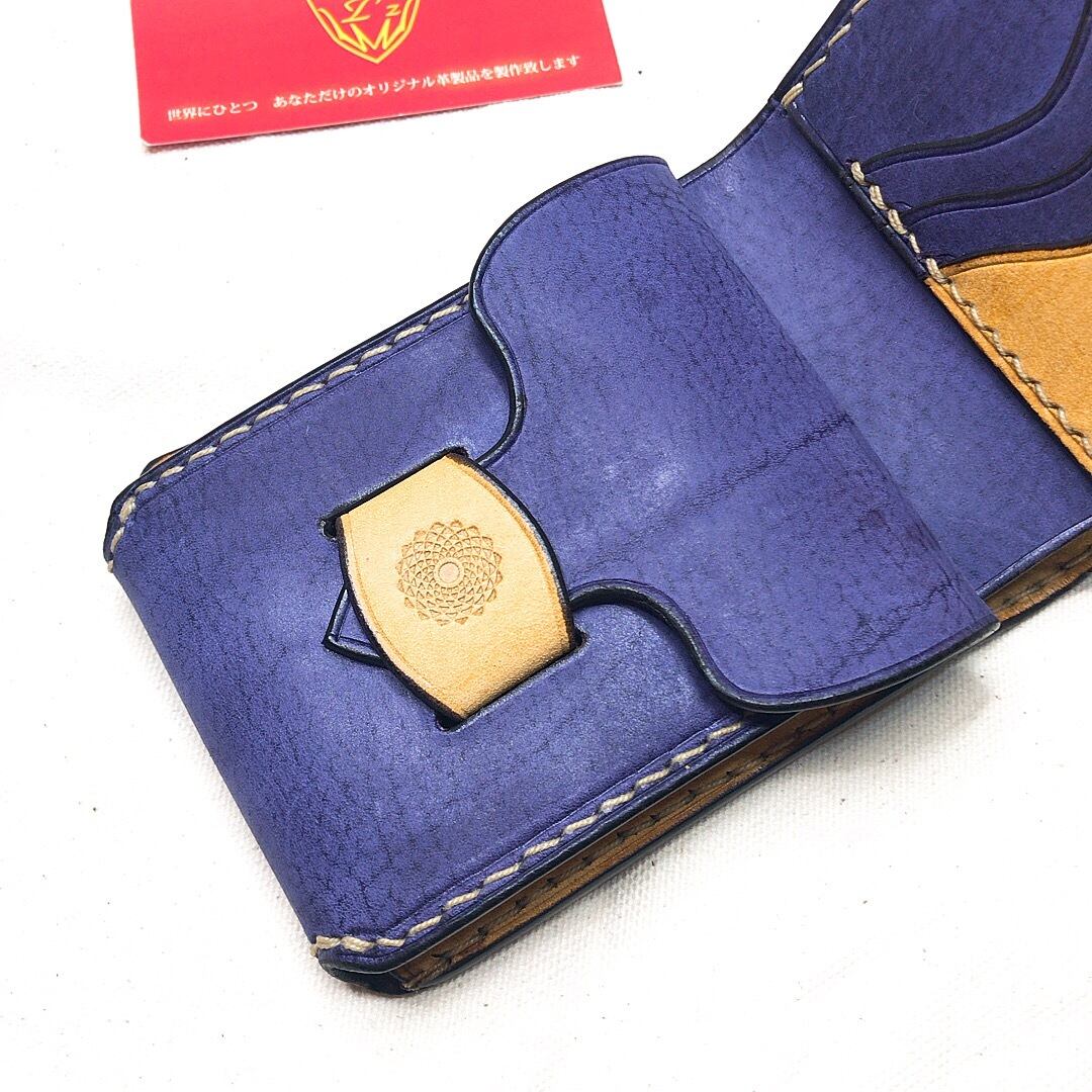 ベジタブルタンニン鞣し オイルレザー パープル×イエロー+黒 バイカラー