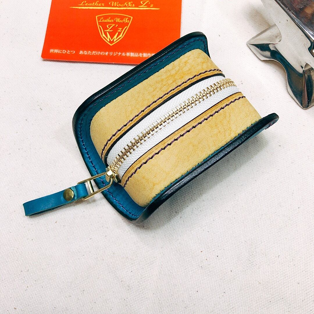 外装 植物タンニン鞣し オイルレザー ターコイズ×イエロー
