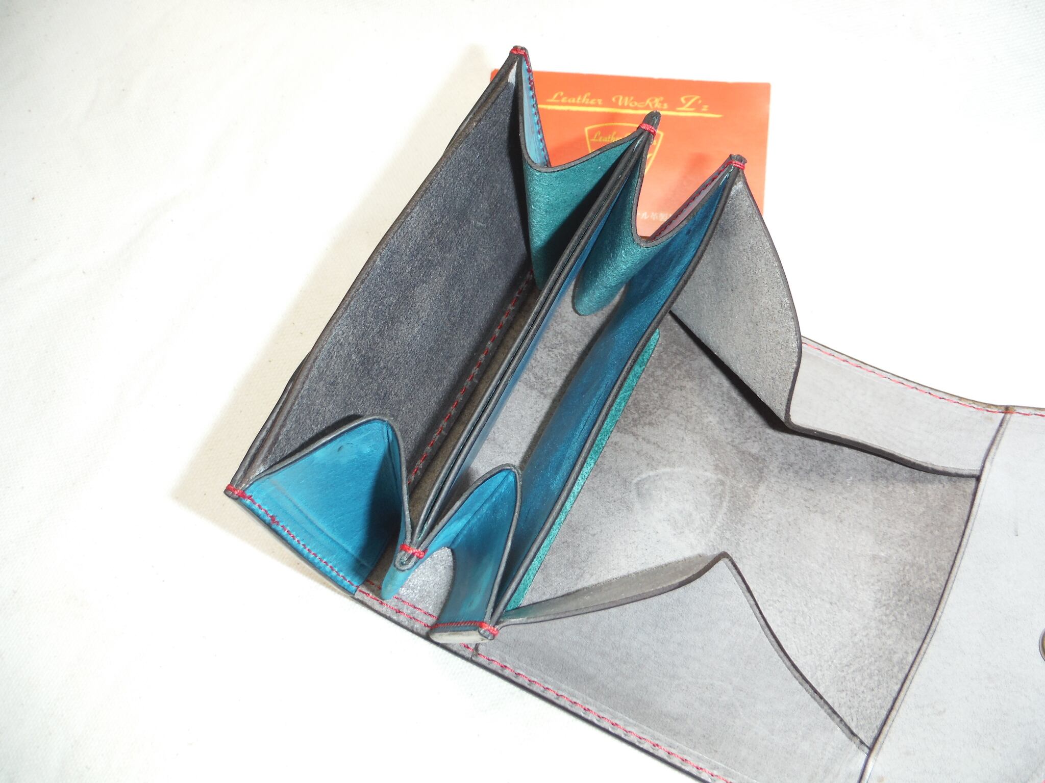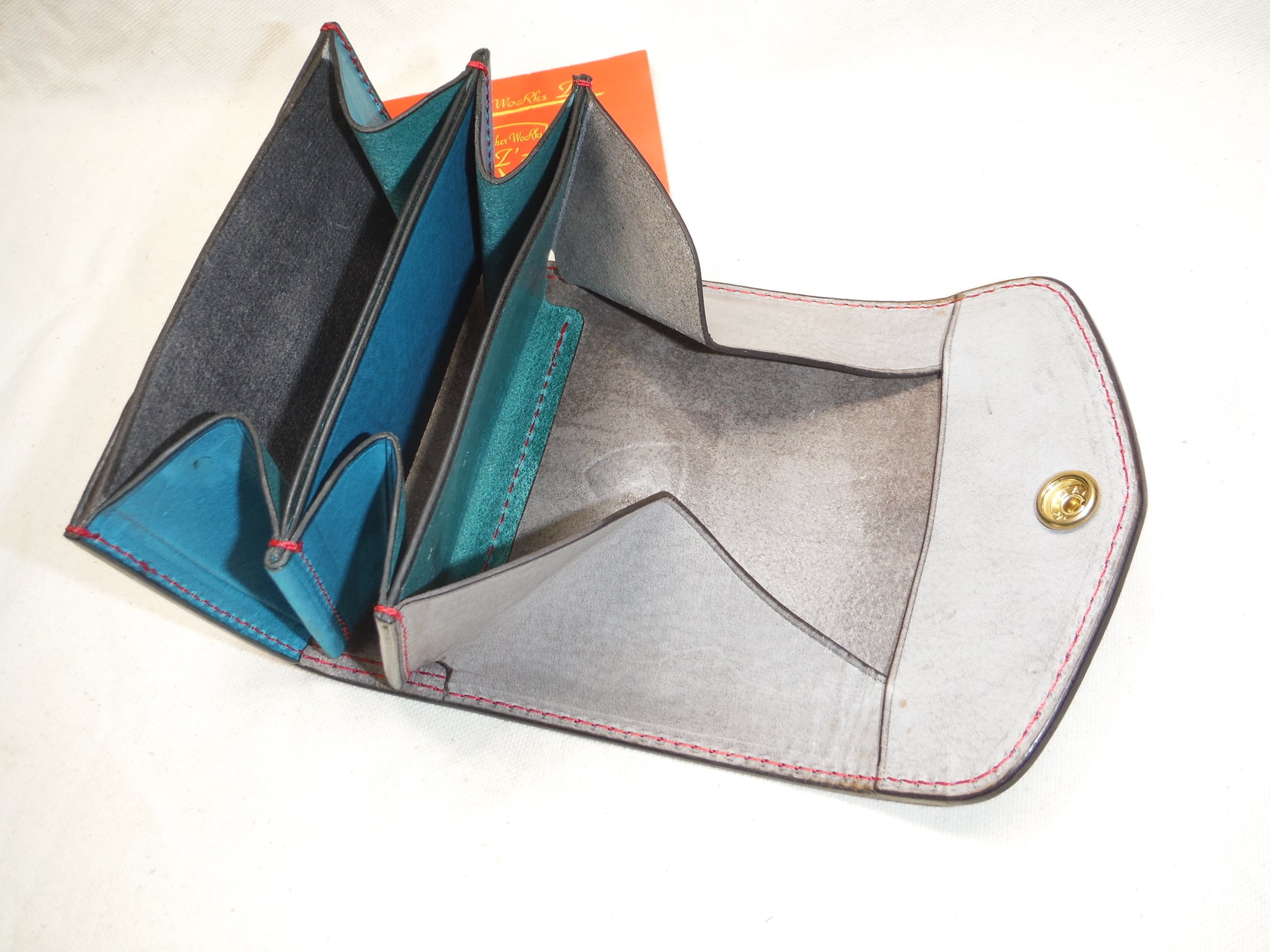 ギャルソン ミドルウォレット オイルレザー グレー×ターコイズ