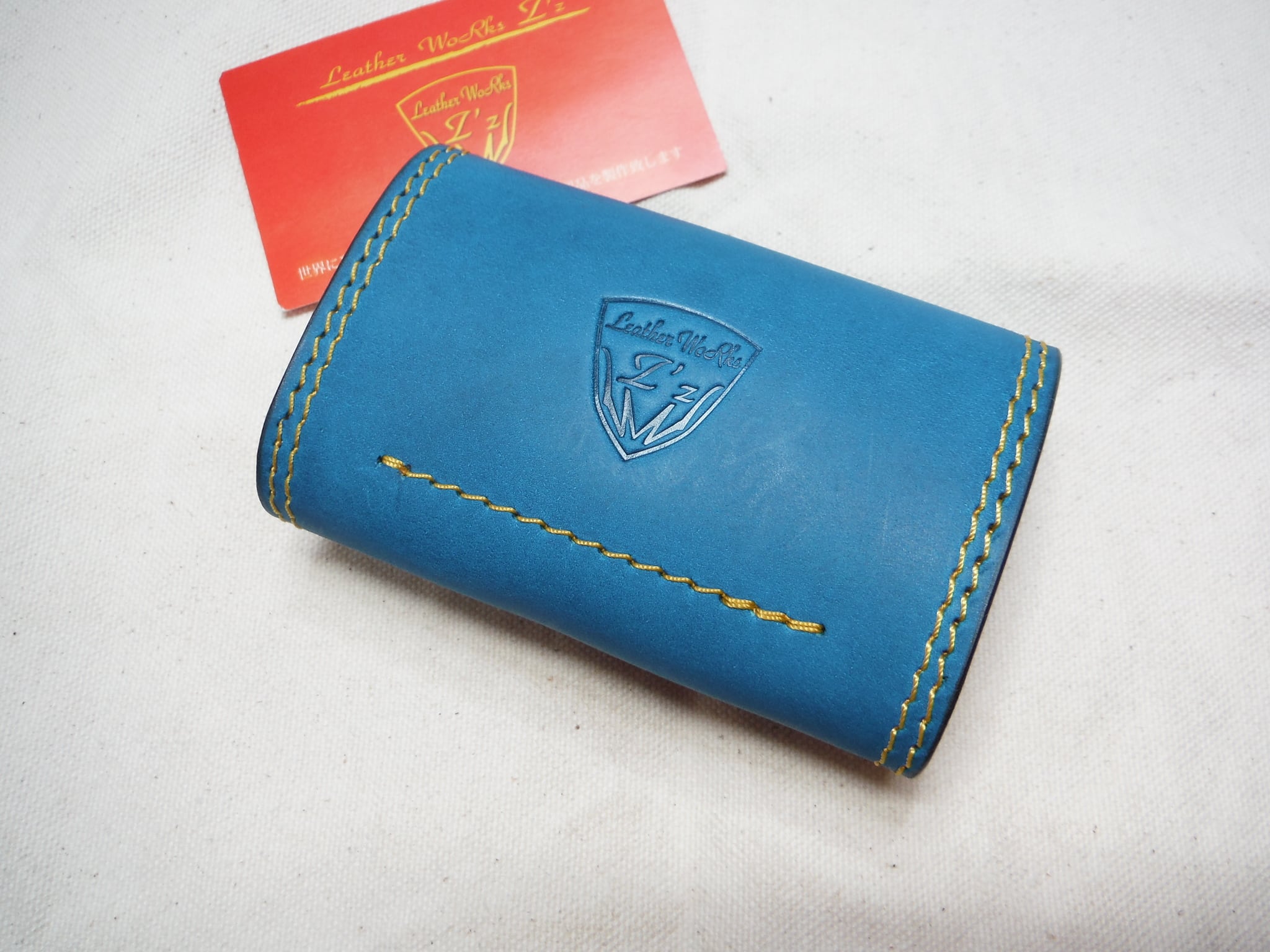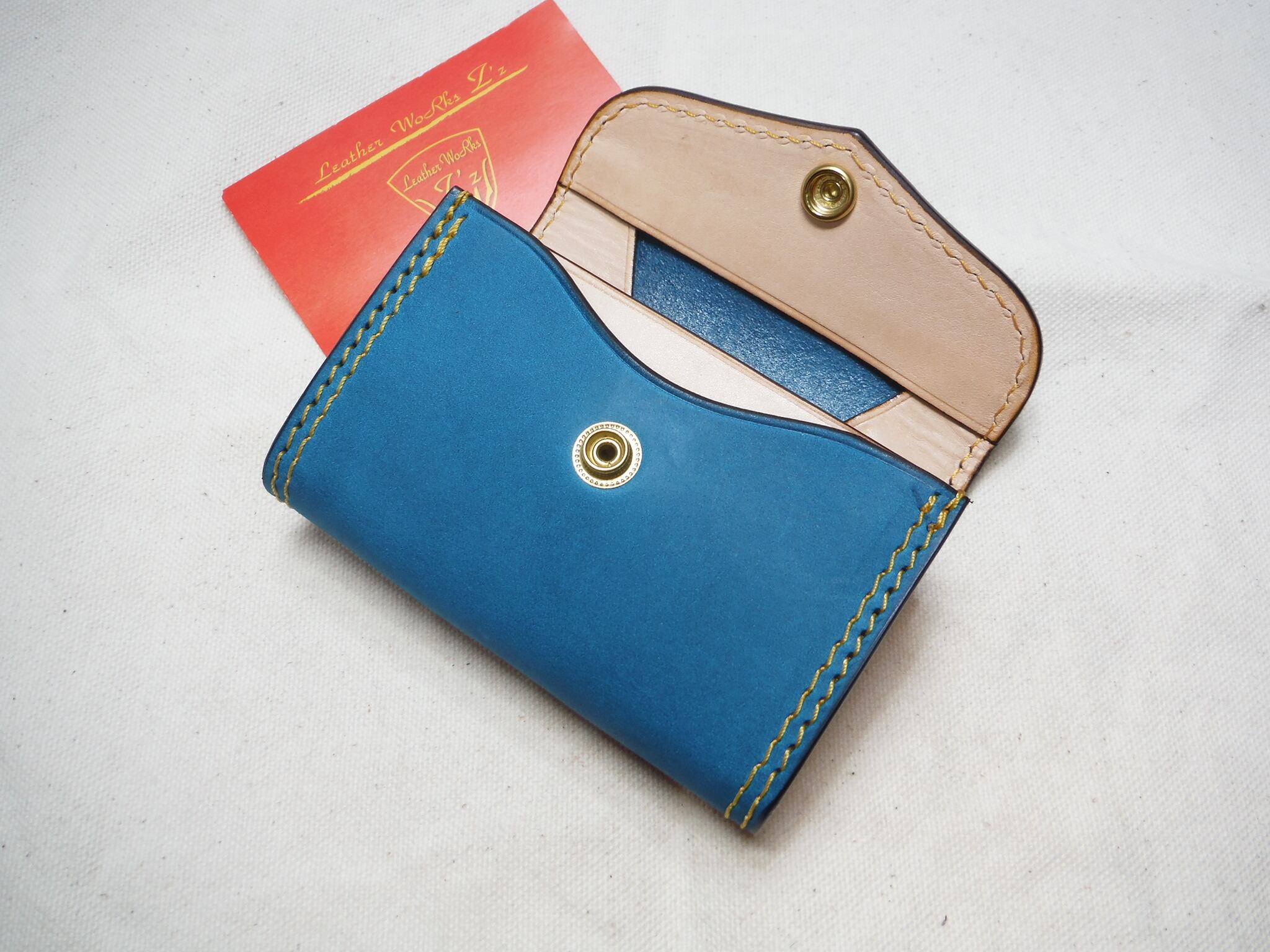 小さい ギャルソン ミニウォレット オイルレザー ターコイズ×ナチュラルヌメ
