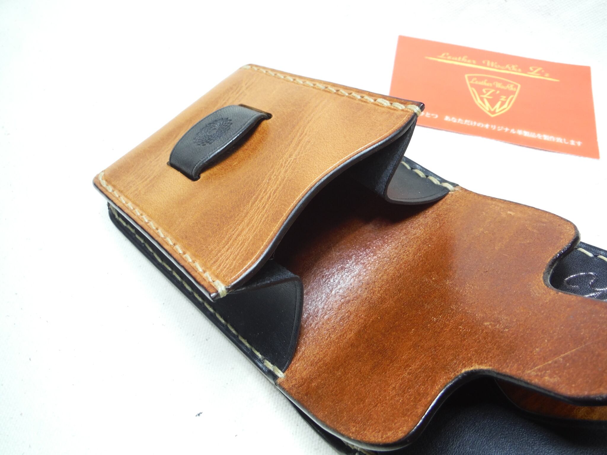 激シワ加工 激オイル レザー キャメル×ブラック LWZハーフウォレット 手縫い