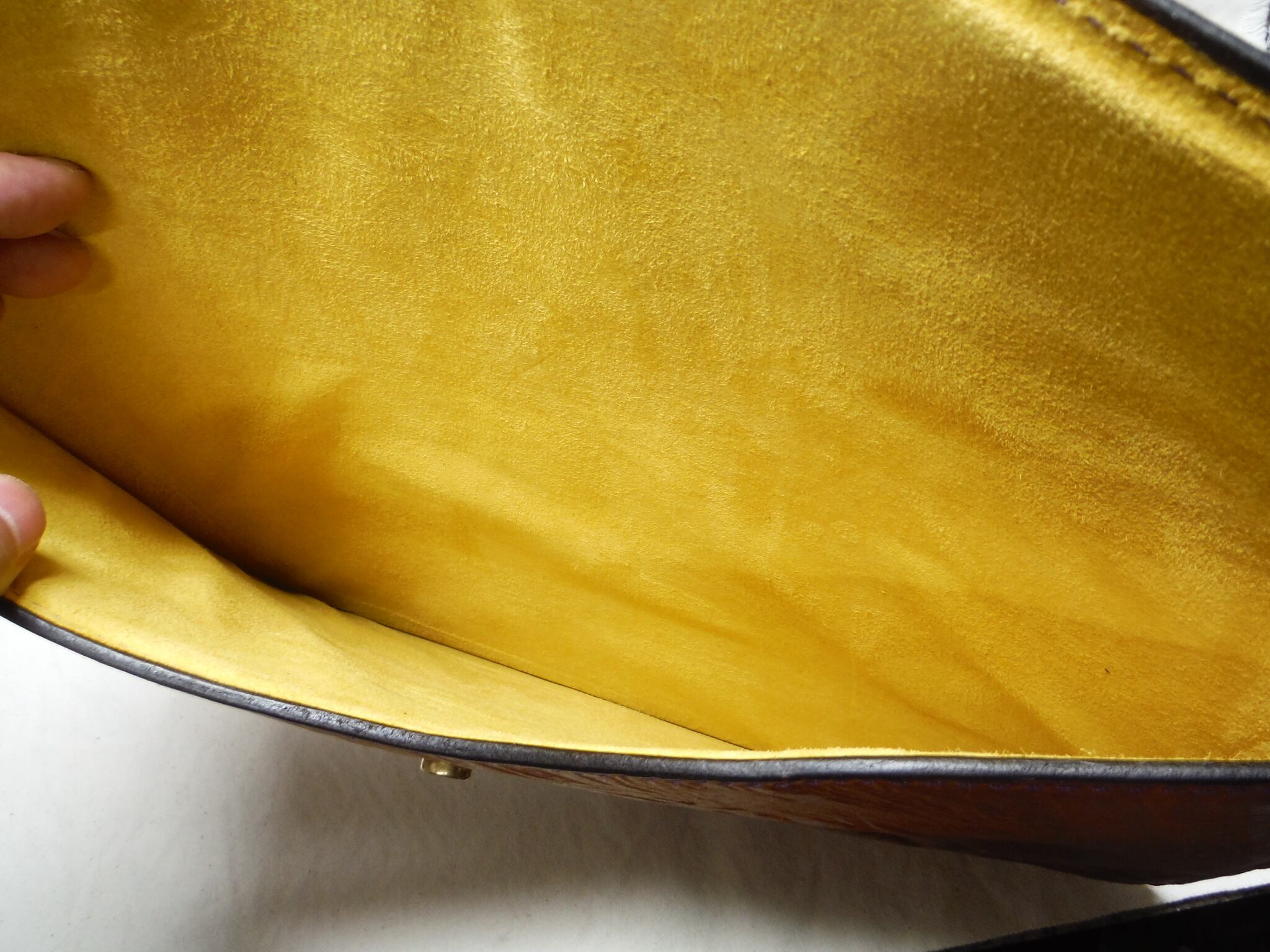 外装には手もみシワ加工の激オイルレザーとワックス加工ブラックレザーを合わせたバイカラーで仕立てています。