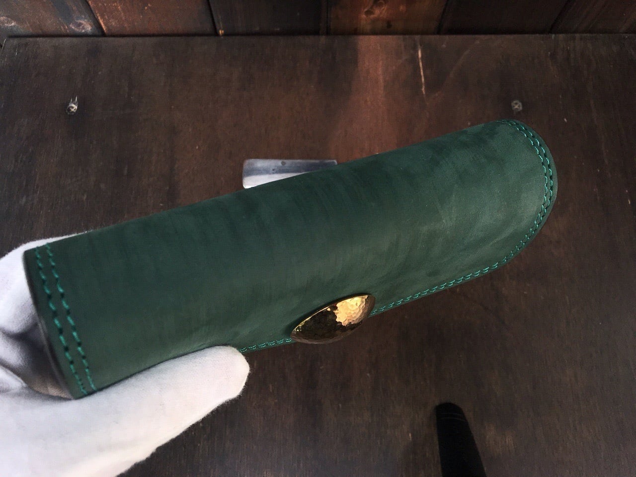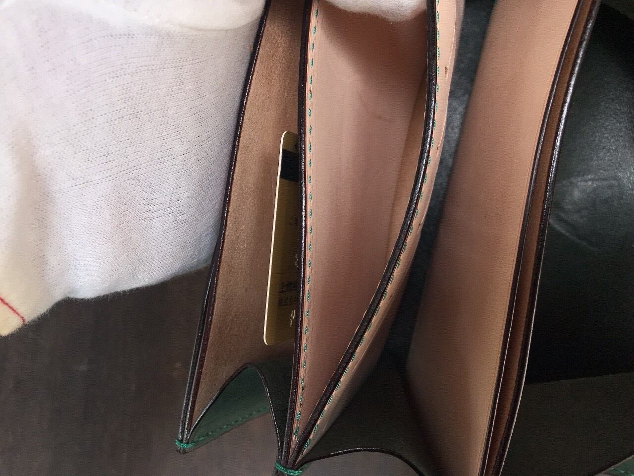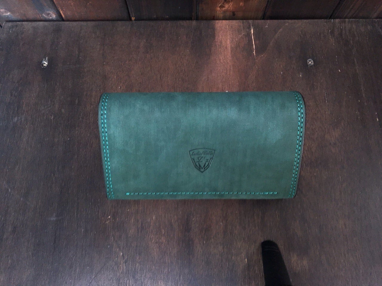 私のイメージに合うダークグリーンの素材と巡り逢う機会があり、お財布を製作しました。