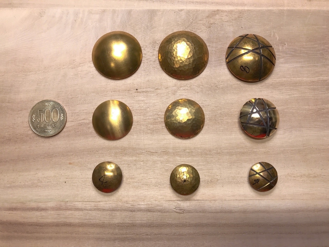 ・大型36mm LWZ製オリジナル ハンドメイド コンチョ真鍮無垢(ソリッドブラス)槌目加工品
