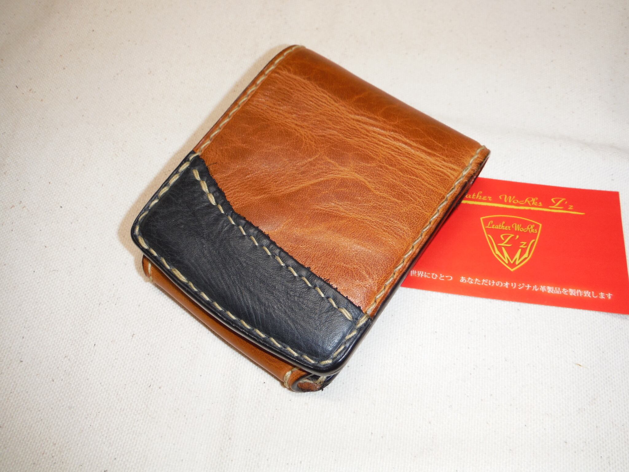・革の素材感を生かすため 通常3ポケットのカード入れ部を 重ねてまとめ入れする構造に変更し製作してみました。
