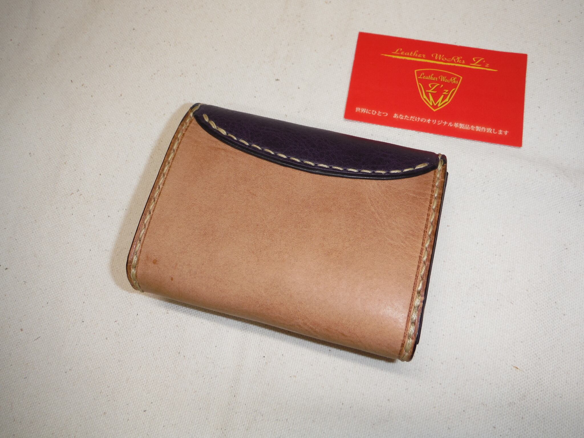 銀擦り(表面を軽くサンディング)し、オイルで仕上げた植物タンニン鞣し ナチュラル×シボ加工オイルレザー パープルのバイカラー