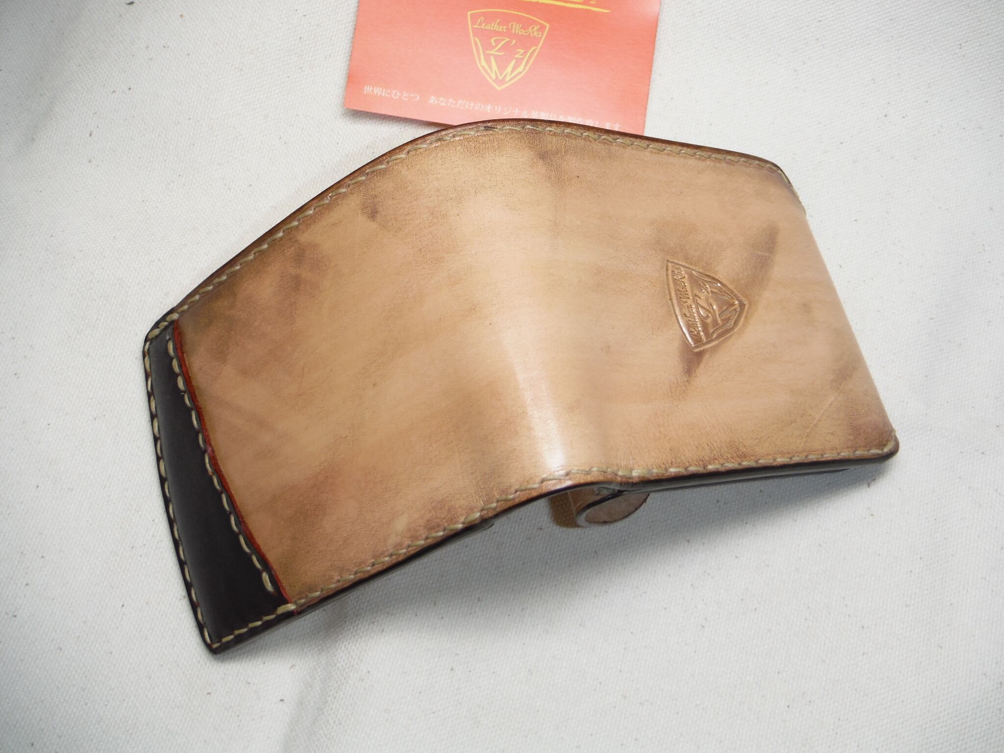 国産 ベジタブルタンニン鞣し サドルレザー(ナチュラルカラー ヌメ革)に手染めでヴィンテージ染色を施した LWZ定番ハーフウォレットです。